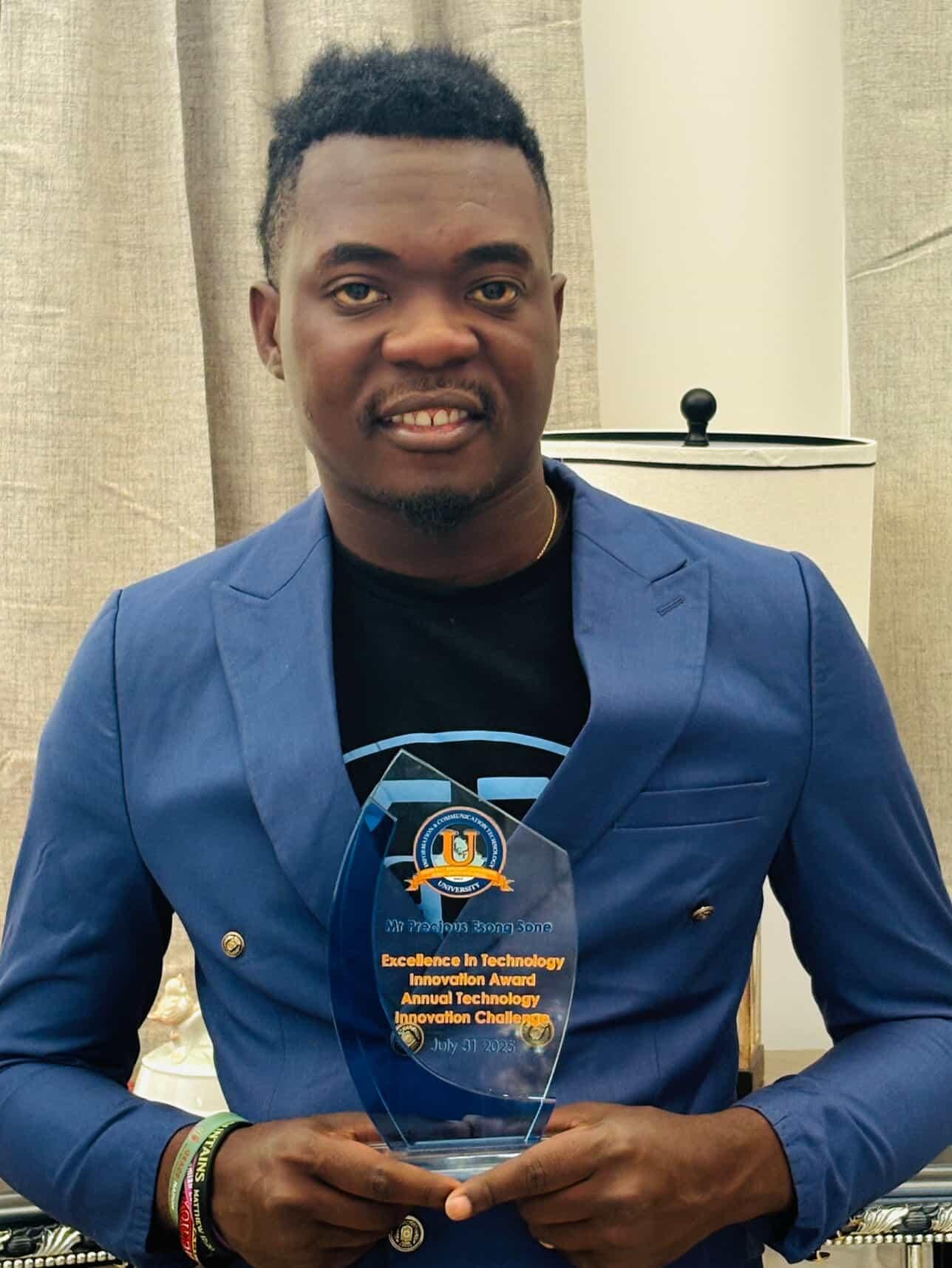 The ICT University Foundation has named Mr. Precious Esong S., as the 2025 recipient of its Excellence in Technology Innovation Award under the Annual Technology Innovation Challenge. This international, Pan-African distinction honours innovators and researchers whose technology-driven solutions address critical education and healthcare challenges across Africa, and the 2025 cycle marks the first-ever cohort under the Challenge’s current framework. The programme attracts hundreds of applications from innovators, early-stage ventures, and student-led teams in multiple countries; only a small fraction are shortlisted, making final selection for the Excellence in Technology Innovation Award a highly selective honour within a strong international field.